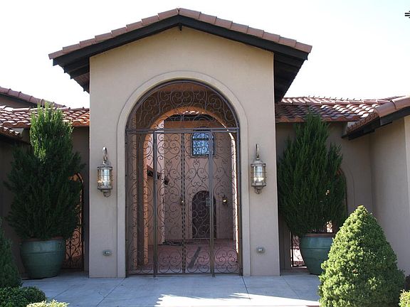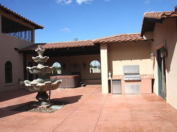 Gorgeous Mediterranean home. Lg courtyard has outdoor kitchen, hot tub & Guest quarters. Stain glass window in entry. Lg living rm & den share two sided brick fireplace. Tall ceilings. Gourmet kitchen features HUGE island,2 dishwashers,double oven, farm sink+island sink,large pantry,custom cabinets &eat-in. Lg master suite has fireplace, nursery, 2 vanities+extra counter, jet tub, lg walk-in shower, separate potty/urinal rm. Storage deluxe. Upstair bdrms, baths & living area. 5 car garage. MUST SEE.