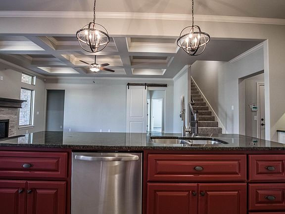 This Shiloh Bonus Room 2 floor plan includes 2,805 Sq Ft of total living space, which includes 2,450 Sq Ft of indoor living space and 355 Sq Ft of outdoor living space.There is also a 610 Sq Ft, three car garage with storm shelter installed!Living room is equipped with a gas ignition fireplace, gorgeous coffered ceiling, windows for lighting, & barn door. Kitchen has 3CM granite countertops, cabinets to the ceiling, and under cabinet lighting. Appliances include microwave, cooktop, built in double oven, and dishwasher! There are a total of 4 bedrooms, 2 full bathrooms downstairs & 1 bathroom located in the bonus room upstairs. Bonus room would be great for family entertaining, or used as a game room. Lots of exta storage located under staircase as well. Master suite includes a luxurious Jetta Whirlpool tub, dual vanity sinks, great walk in closet with seasonal racks, walk in tiled shower, and a boxed ceiling with an upgraded rope lighting. Other amenities include, storm shelter, fresh air ventilation, air purification, Rinnai tankless hot water, neighborhood playground & pool! Wonderful covered back patio with fireplace, home backs up to a greenbelt.