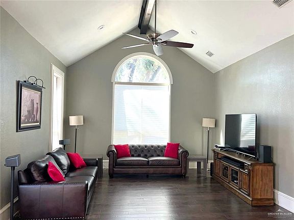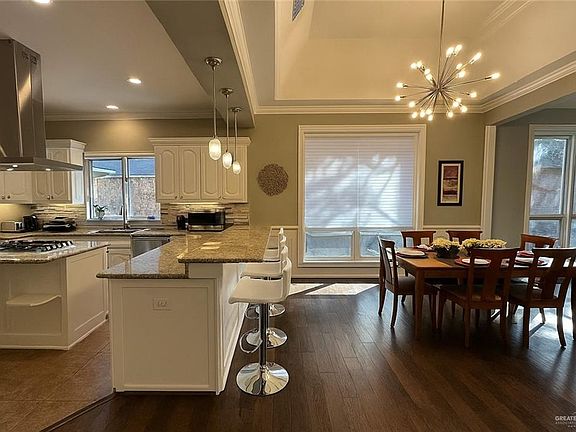 This location can't be beat in London Court subdivision in North McAllen. In close proximity to everything North McAllen and quick drive to Edinburg. This home has curb appeal, lots of natural light and a great neighborhood with large, mature Oak trees. In addition to the large primary bedroom, you'll also get to enjoy a bonus sun room. An open floor layout with a chef's kitchen, granite countertops, hardwood floors, vaulted ceilings, travertine tile in bathrooms, an oversize laundry room and a POOL! It also features a 2 car garage with a 2 car carport. Monthly rent includes landscape service, monthly pool service, security alarm and camera system with smart home features. Additional Monthly services: landscape service fee - $50.00, pool service fee - $160.00, security alarm system and camera system service fee - $83.00. Come see it today!