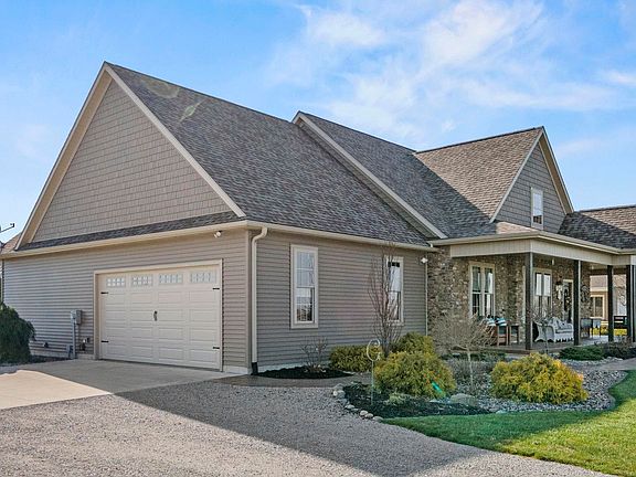 No detail was overlooked in this 4 bedroom, 3 bathroom home built in 2017 by VanGordon. As you approach the front door, you will be greeted by a stamped concrete covered porch with cedar posts and natural stone. Walk in the front door to the inviting foyer. The office space is located on the main level and provides ample natural light and a view of the outdoors. The spacious great room features a wood burning fireplace with a natural stone surround. As you move into the kitchen, you will be wowed by the stunning granite countertops, custom knotty hickory cabinets made by Schmucker, travertine backsplash and a pot filler. The master ensuite is located on the main level. The master bathroom boasts a travertine walk-in shower with dual shower heads, dual copper sinks with granite countertops and a spacious walk -in closet. The main level laundry offers cabinets for additional storage and a leathered granite countertop perfect for folding. A second bedroom and additional full bath with leathered granite countertops are also located on the main level. Upstairs you will find two bedrooms and another full bathroom with slate flooring and dual sinks with leathered granite countertops. Whether used for storage or finished for a secondary living space, the walk-in attic on the second level has so many possibilities. The two car attached garage has an epoxy floor and houses the mechanicals. Travel outside to the 26' x 36' outbuilding which can be used for storage or would be a great man-cave or shop. Situated on 2 acres, this home offers a stamped concrete back porch overlooking the large yard with peaceful views.