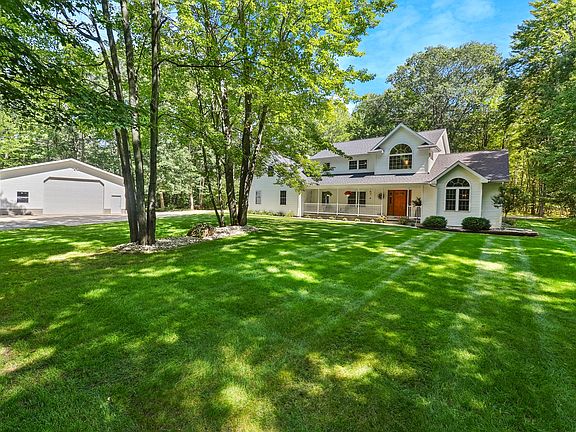 Nestled on 5.8 acres, this property truly offers a lifestyle of comfort and convenience in a beautiful natural setting. Located just minutes from Higgins Lake and near the amenities of Markey Township Park - featuring a dog park, walking paths, playground, and disc golf - you'll enjoy both privacy and proximity to recreation. The home boasts 4 bedrooms and 3.5 bathrooms, with a spacious kitchen and an attached heated 2-car garage for convenience. A large, heated detached garage provides extra space for your toys or projects. Entertain on the inviting covered front porch or relax on the back deck overlooking the serene landscape. The finished basement is a complete entertainment hub, with a game area, family room, built-in bar, full bathroom, and exercise room. With beautifully landscaped grounds and a bonus room above the garage, this property offers endless possibilities for living and leisure.