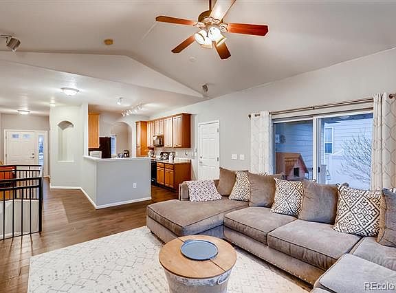 Open, Bright, and Spacious in Highly Desirable Firestone with a Fabulous Finished Basement! You are greeted by on-trend upgrades like wide plank hardwood floors, fresh paint, vaulted ceilings, and big windows streaming in natural light. The heart of the home is the family room that leads right out to the backyard and covered patio. The kitchen is fit for a chef with upgraded cabinetry, full appliance package, and lots of counter and cabinet space for prep and storage. The master suite is quite luxurious, with an en-suite master bath with great soaking tub and his and hers split vanities. The basement has been finished with an incredible rec space with a beautiful custom wet bar. This space makes a perfect 2nd living area, home theater, office, playroom, home gym... There are really endless options here. Enjoy Colorado's famous 360 days of sunshine from the two patio spaces and large backyard. Firestone is Northern Colorado's favorite community, come visit today to find out why!