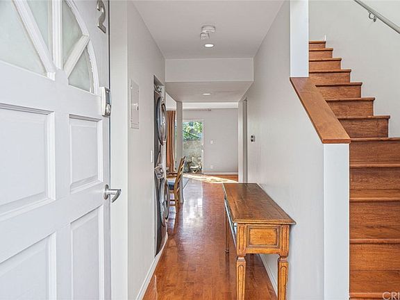 Welcome to this rare, quaint townhome in the most prime area of Valley Village on Whisett Avenue near absolutely everything! Just 8 units in this super quiet and bright two-story charmer where there are 2 bedrooms and 3 baths, one being a downstairs guest powder room. The quality of construction is modern and move-in ready. Enjoy the architectural plus where the second floor landing allows for viewing of the dining room below. Warm hardwood floors downstairs with recessed lighting, also large windows and balcony. Also of note is the wide-open living/dining room and modern kitchen with stainless steel appliances. Washer Dryer area included to make living easy. Come quick to feel out this one-of-a-kind delight!