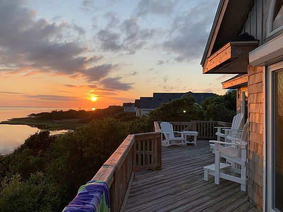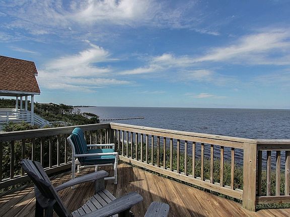 You have discovered a beautiful, private, sound-front Outer Banks (OBX) vacation rental home for your entire family. This home provides sweeping views of the Pamlico Sound from a secluded cove among Buxton's live oak trees. The views of the sound will take your breath away, and you'll discover a grand abundance of wildlife. The water has no undertow, and the gradually-increasing water depth makes this beach just right for children. You'll love lounging, working on that tan, kayaking, kiteboarding (with room to set up your rigging), paddleboarding, or pursuing other aquatic sports with perfect winds. When you follow the meandering, 50-foot, private walkway from the home to the water, it will take you to your own white sandy beach while winding under an umbrella of live oak trees, which is as close to a tropical island setting as one can find on Hatteras Island. This home will help you get some time to kick back, relax, and watch the bald eagles soar with the wind. Spend your afternoons fishing, gigging, clamming, and shrimping right in The Treehouse's backyard. If this is not to your liking, various restaurants are available and within a short drive in either direction on NC12. During the summer months, you will see BOTH the sunrise and the sunset over the Pamlico Sound (see first 2 pics).The home itself is top-notch, with a full kitchen, a large dining area, a beautiful living room area, and an adjacent sitting room, perfect for tucking in and reading a great book. Average rate is $403/night but rate varies based on season. The 2025 calendar is ready for booking. Partial stays and weekly rentals available. Free WiFi Up to two dogs are welcome for a nightly fee. Please note: Guests have access to the Club Hatteras Pool Facility. Additional details around this facility will be shared in your check-in email and during the check-in process. The club is typically open Mid-May to Mid-October, depending on the weather. 2 dogs welcome in this home. There is free parking available for 5 vehicles. You must be 25 years or older to rent this property. Check calendar in link below for available dates and rates. Go to Vacasa dot com / unit / 44416 for more details. Go to Vacasa dot com / unit / 44416 for all lease details