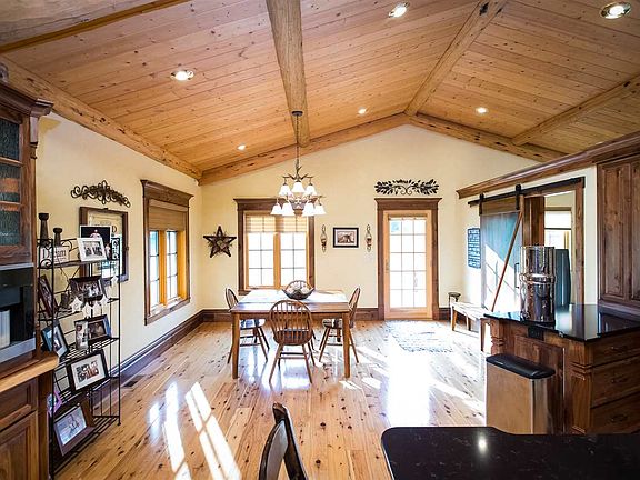 Your dream home awaits! This high-end custom home sits on 9.32 acres in Meadowbrook Estates and offers stunning views in every direction. The main floor boasts 2170 square feet with vaulted pine ceilings & log accents and includes two bedrooms, two full bathrooms, laundry room & great room. The kitchen is centered in the heart of the home and was completely remodeled in 2015. Improvements include custom, handmade walnut cabinetry, quartz countertops, & top-of-the-line Jenn-Air appliances including a built-in automatic coffee maker & gas range. In the lower level you will find a large family room, two generously sized bedrooms, an office with custom cabinets and a large storage area and utility room. No expense was spared with the flooring of this home. On the main floor you will find Australian Cypress hardwood and the lower level is covered with tile imported from Mexico. Outside you will fall in love with the covered maintenance-free deck that wraps around the entire perimeter of the house allowing you to take in the tranquility that the setting of this property exudes. The garage/shop measures 56x50 & includes three 8 ft overhead doors and one 14 ft overhead door. Inside the shop you will find an office area, kitchenette & three-quarter bathroom. There is an additional concrete parking pad on the side of the shop with RV hookups. This property has been meticulously cared for & maintained. Don't miss out, properties like this don't become available very often!