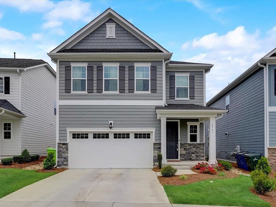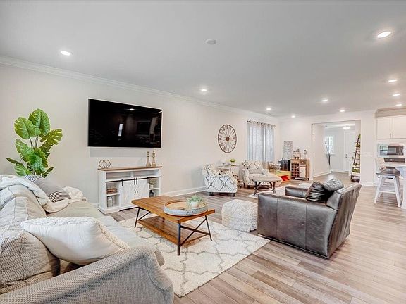This stunning 5 bedroom, 3 bathroom residence boasts an open concept floor plan and is only 1 year old! The heart of this home is the spacious kitchen equipped with top-of-the-line stainless steel appliances, a large island, quartz countertops, and a walk-in pantry. The guest room is located on the first floor, right beside a full bathroom, and is tucked away in the back of the house for privacy. The second floor features four more bedrooms, plus a loft! The impressive primary bedroom has tray ceilings, a large walk-in closet, and a tiled bathroom with separate vanities and a garden tub. Step outside onto the screened-in porch and discover a peaceful retreat. Refrigerator, washer, dryer, curtains, security system, & TV wall mounts convey.