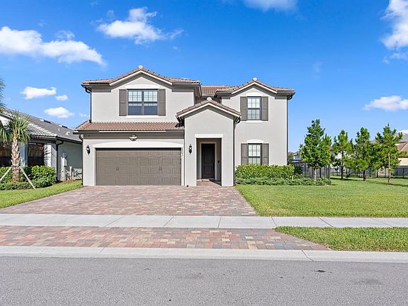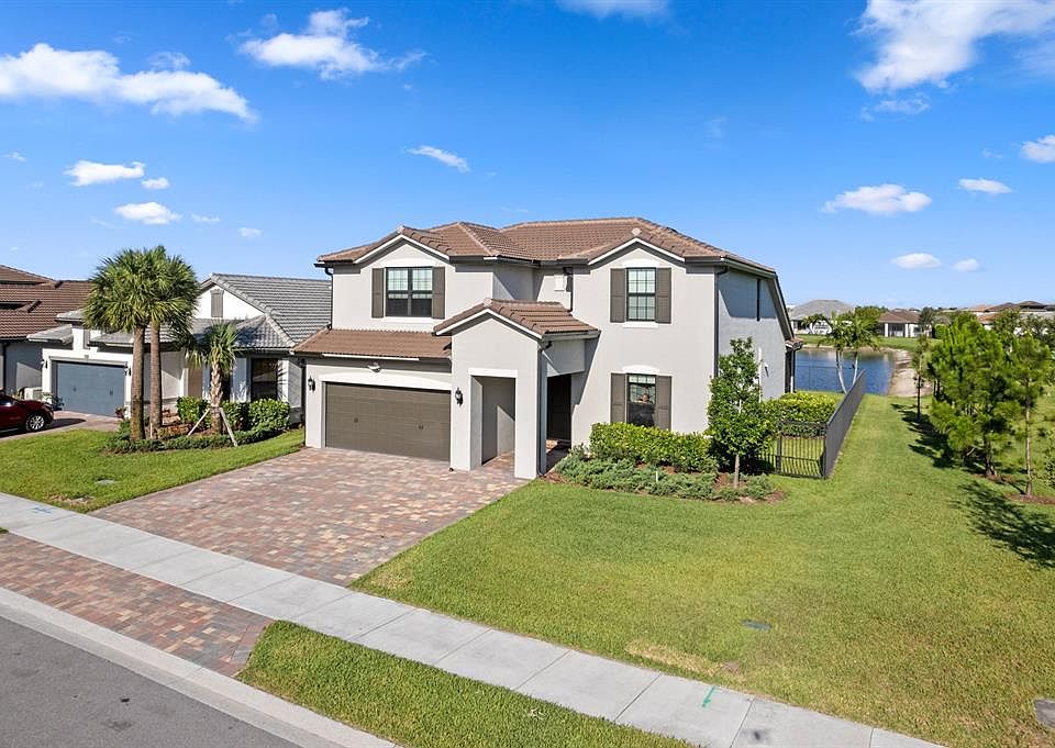 Short term rental available - 7 to 12 months!! Lake views, luxury vibes, and loaded with space- welcome This 5- bed stunner sits on a corner lot with a dreamy water view and a layout built for real life. Primary suite + bonus guest room (or office) downstairs, massive loft upstairs, and a private guest suite with its own bath. Upgraded tile, plush carpet, and a garage so big you'll actually want to organize it. Extended driveway = no parking battles. Built in 2022 with full impact windows and doors and a builder's warranty still in place. This isn't just a house- it's the one!