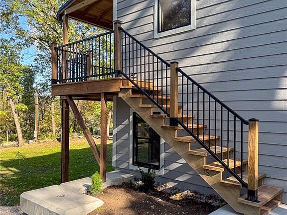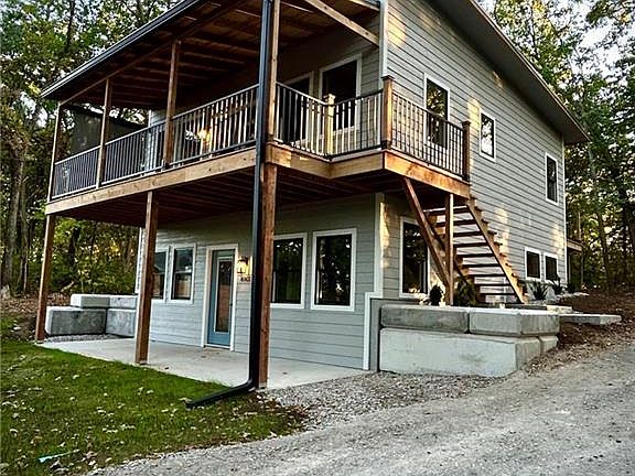 Electric fireplaceCovered deckMaximizes lake viewsQuartz countertopsMetal roofSpray foam insulationWooded backyard