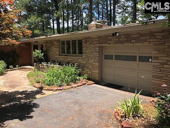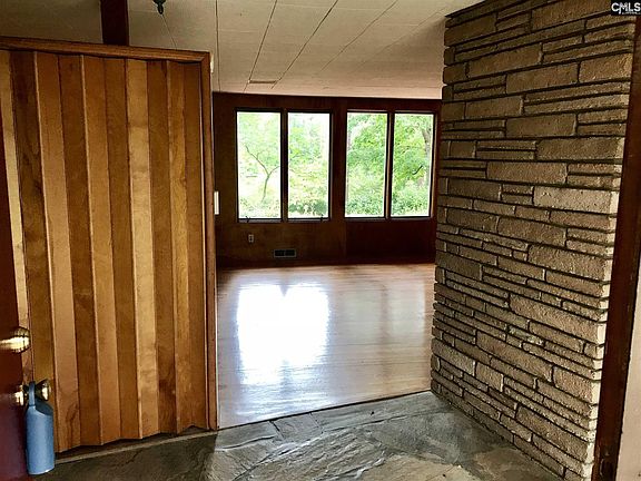Mid-century gem and gardener's paradise with approximately 100' feet of water frontage on a private, in-town lake. This property is a true retreat from city life while still being only minutes from downtown Columbia. The back yard is a sight to behold beginning with breathtaking views from the elevated back patio. From there you have a bird's eye view of several fountains, garden beds, and meandering paths that lead down to the lake and private dock - the perfect place to end your day and unwind, or spend your weekends. To be clear, this home is made for those who enjoy the outdoors. True to form, the inside features walls of windows opening the rooms up to the outside. The master, living, and dining rooms rooms, in particular, really bring the lake and garden views inside. The home also features a nicely updated kitchen with appliances, all of which remain. The interior employs the use of several different finish materials - hardwood, slate, tile, and heart pine flooring; stone, wood and plywood wall paneling, which reveal its authentic mid-century roots. Original solid wood accordion-style doors throughout and still fully functional. Original double pane casement windows in living and dining areas with built in screens also still functional. So many undiscovered treasures in the house. I find something new each time I visit. I highly recommend walking the property in order to fully experience and appreciate it.