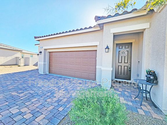 Discover this brand-new Richmond American designer home for rent, featuring 10-foot ceilings and 8-foot doors throughout, creating a spacious and elegant feel. This beautifully upgraded home includes a tiled primary bath shower, extended covered patio, garage service door, and French doors leading to a flexible living space. It comes equipped with a solar conduit, soft water loop, and additional windows for plenty of natural light. The kitchen offers a GE stainless steel appliance package, Premier Duraform cabinets with a linen finish, 42-inch upper cabinets, upgraded quartz countertops in both the kitchen and bathrooms, and a stylish tile backsplash. You'll also find an upgraded stainless steel sink with a matte black faucet, matte black fixtures in the primary bath, upgraded lighting and ceiling fan prewires, premium carpet and ceramic tile flooring throughout, and two-tone interior paint for a clean, modern look. Please note: furniture shown is not included and will be removed once your application is approved.