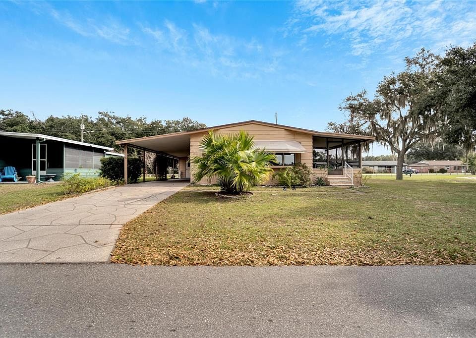 Beautiful Sunsets are in your future. Welcome home to this cozy 2 bedroom, 2 bathroom home in the 55+ community of Foxwood Lake Estates where you own the land!! This home sits on a premium lot with no rear neighbors, only one side neighbor and a fabulous view of Foxwood Lake and it's fully furnished! Wake up to gorgeous sunrises and spectacular sunsets from your private Florida Room with no side neighbor or from the spacious living room. The driveway has recently been refinished and the backyard has a fenced in area! Seller has recently replaced the roof in 2023. All this and more located very close to the clubhouse, the community pool and the walking path around the lake. Close to I-4, between Orlando and Tampa and only 40 miles from Disney World!! Don't forget to view all the amenities and take advantage of the very low annual HOA dues with community features that include a large clubhouse, game room, billiards room, sauna, fitness center, library, large heated pool, hot tub, pickle ball court, shuffle board courts, bocce ball court, basketball hoop, horse shoe pits, paved walking path around the lake and so much more!! Lots to do in this active community.