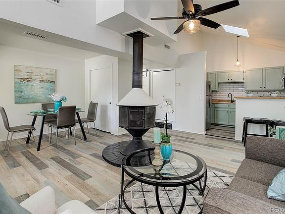 Welcome to Garrison Lakes, minutes from Olde Town Arvada. This beautifully updated cozy, ground level, end-unit condo offers a bright and open living area, highlighted with vaulted ceilings, new flooring, and a fabulous free-standing fireplace. An overhead skylight illuminates your kitchen, which offers a full array of newer stainless appliances, freshly painted cabinets, complimented by a new backsplash is perfect for entertaining guests and preparing meals. A spacious bedroom, with walk-in closet and a fully updated bathroom complete this great floor plan. Brand new washer and dryer is included. Outside, there’s also a personal storage room and even a private patio for enjoying your morning coffee. Only steps to Garrison Lakes and easy access to I-70 for commuting. Nearby shopping, dining, schools and parks.