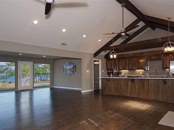 Remarkable VIEW of lake as you enter! Great remodel for entertaining or large families. Watch the boat activity from your open concept living and kitchen or enjoy the outside with the shade of a beautiful oak. Features include: custom knotty alder, hardwoods, porcelain floors with tumble marble inlay, granite counter tops, all stainless steel appliances, rock fireplace. Landscaped with irrigation system