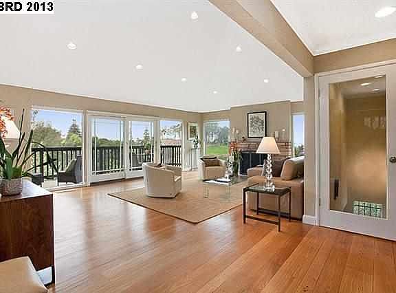 Renovated, open & very private contemporary w/sweeping hills & bay views, gourmet kitchen, lg family rm, master suite, possible au pair/home office w/sep entrance, formal LR w/vaulted ceiling, rare 4-CAR GARAGE! Possible expansion into large basement. Lovely yard, ample storage nr Hillcrest School.