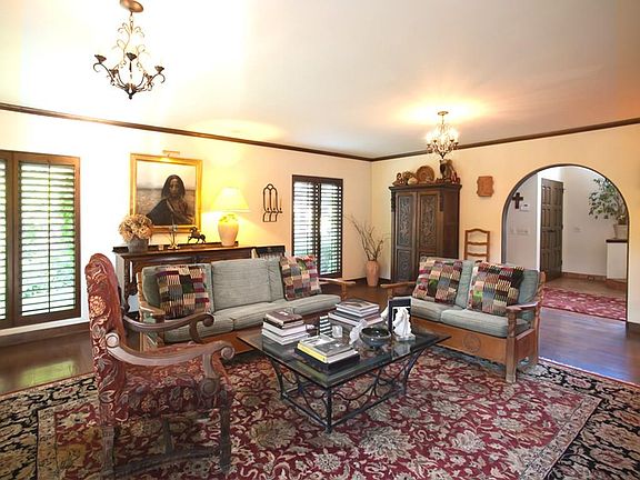 One-of-a-kind custom home. Nestled among the trees, this lovely four bedroom, three and a half bathroom Santa Fe-Style home exudes tranquility. Abundant windows fill the spaces with natural light and offer beautiful views of the grounds and the lake - the majority of which is part of this property. Gracious spaces flow one to the next indoors and out for entertaining perfection.