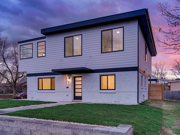 Sexy, modern two-story pop-top with gorgeous high-end finishes on sunny corner lot. Open floor plan with huge windows, high ceilings, elegant cement fireplace, scratch/waterproof hardwoods, and artsy Colorado flair throughout. Tri-fold doors and windows allow for the entire main level to be open to the outside, perfect for breezy entertaining. Kitchen features premium black stainless appliances, quartz counters, large pantry, secondary sink area, and great prep space. First floor finished with study/formal dining room, powder room, and mudroom. Second floor elegance continues with a second living space, bright master with en suite bath and gorgeous tile work, three more bedrooms, laundry, and second full bath. The essentials are there: central air, tankless water heater, two-car garage with electric car hookup. Landscaping ready for your personal touch with sprinkler systems to maintain. Hip Regis/Berkeley neighborhood with parks, restaurants, grocery, and highway/downtown access.