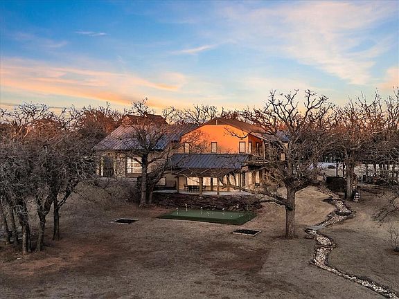 Discover the "Hidden Treasure," a one-of-a-kind property discreetly tucked away behind a gated fence, shielding its stunning beauty from the main road. Nestled on 8.86 acres of pristine land, this remarkable estate boasts a horseshoe-shaped waterfront enveloped by a serene small lake, offering a peaceful and picturesque setting that feels like a world of its own. This expansive 4,257-square-foot, two-story gem seamlessly blends versatility and luxury. Upstairs, the residential level exudes sophistication with premium finishes and jaw-dropping views of the shimmering lake. Every room on the second floor opens directly onto private balconies, perfect for savoring morning coffee or evening sunsets over the water. Car enthusiasts and adventurers will fall in love with the attached 1,334-square-foot garage, fully heated and cooled, featuring drive-through doors on each end and convenient RV hookups. The property also includes a red steel frame workshop, measuring 30ft x 45ft, ideal for creative projects or additional storage. It also has plumbing hookups ready to add a bathroom or other plumbing need. Two water wells ensure ample supply, while a sprinkled yard and meticulous landscaping—highlighted by a charming dry river bed flowing to the lake and crossed by multiple stone walkways—elevate the outdoor experience.Step outside to find a pergola with a stone fireplace overlooking the lake, an inviting spot to unwind. Like to golf? It has a putting green for leisurely fun. Gather around the large fire pit, surrounded by ample space and oversized stone seating, perfect for hosting memorable gatherings. Whether you dream of a waterfront playground, a development opportunity for additional homes, or a serene setting for a place of worship, this estate adapts to your vision. Other properties are commodities, while this one is an experience! Unveil the Hidden Treasure—a breathtaking retreat where luxury, nature, and possibility converge. Schedule your private tour today!