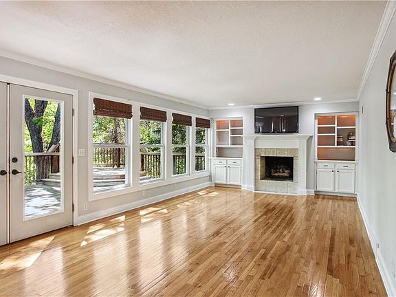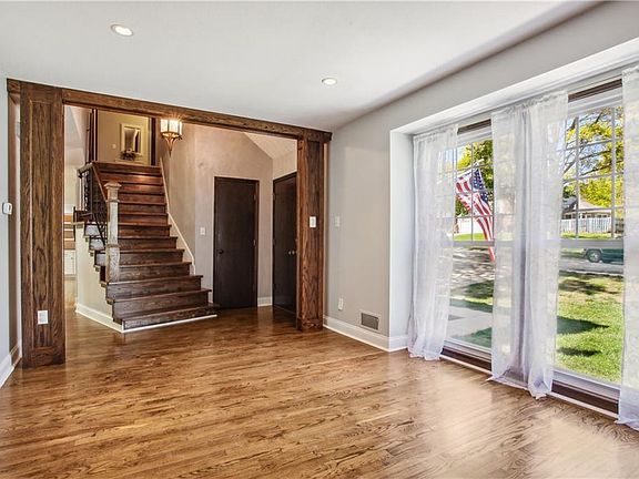 Welcome to this stunning and spacious single-family home located in the desirable Coves neighborhood! As you step inside, you'll be greeted by a bright and inviting floor plan that boasts beautiful hardwood floors, a cozy fireplace with A Large Flatscreen TV above(that stays with home!), and gorgeous kitchen. The open kitchen includes granite counter tops, maple cabinets, and stainless appliances. Need more dining space? Use the front room as a formal dining room! The upstairs includes four large bedrooms, primary bedroom is complete with an on suite bathroom, a full hall bath, and a walk-in attic room for additional storage. The basement is ready for movie nights galore(HUGE Flatscreen stays!)and has a nicely finished full bathroom. Additional amenities of this home include a two-car garage, newer windows, vinyl siding on 3 sides, workshop in the basement (woodworkers delight), laundry room on the main floor, huge deck, and a large fenced in backyard that is perfect for outdoor activities and entertaining. This home is conveniently close to schools, shopping, highways, and dining options. The Coves subdivision offers a wonderful clubhouse, swimming pool, pickle ball & tennis court, playground, and two small lakes for fishing/row boating. It is located within the AAA rated Park Hill School District voted #1 Best School Districts in Platte County. Don't miss out on the opportunity to make this house your dream home!