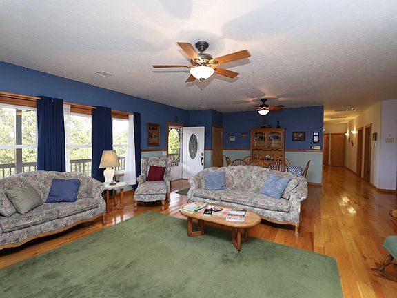 Quite the opportunity to purchase this 2008 well-built custom home on 38 m/l acres. Boasting 2,604 m/l sq ft with 3 sides of porch to enjoy the great outdoors in every season. The home offers an open floor plan that includes a large kitchen with corner pantry, massive dining area, sizable living area and hardwoods throughout. Down the oversized hall (appropriate for handicap access) you will find the grand master suite that includes a walk in closet, large bath with tub and walk in shower. The master also allows easy access to nature with French doors inviting you out to the screened in porch. Remaining bed and bath follow suit with the high standards of the home. Outside you will find a 40x30 finished shop with a large 40x30 attached perfect for the RV or boat. The acreage offers an excellent garden spot, pond with fish and is covered in mature hardwoods carrying a good investment value as well as a beautiful setting. With white tail deer and wild turkeys as your closest neighbors, this peaceful property is ready for you.