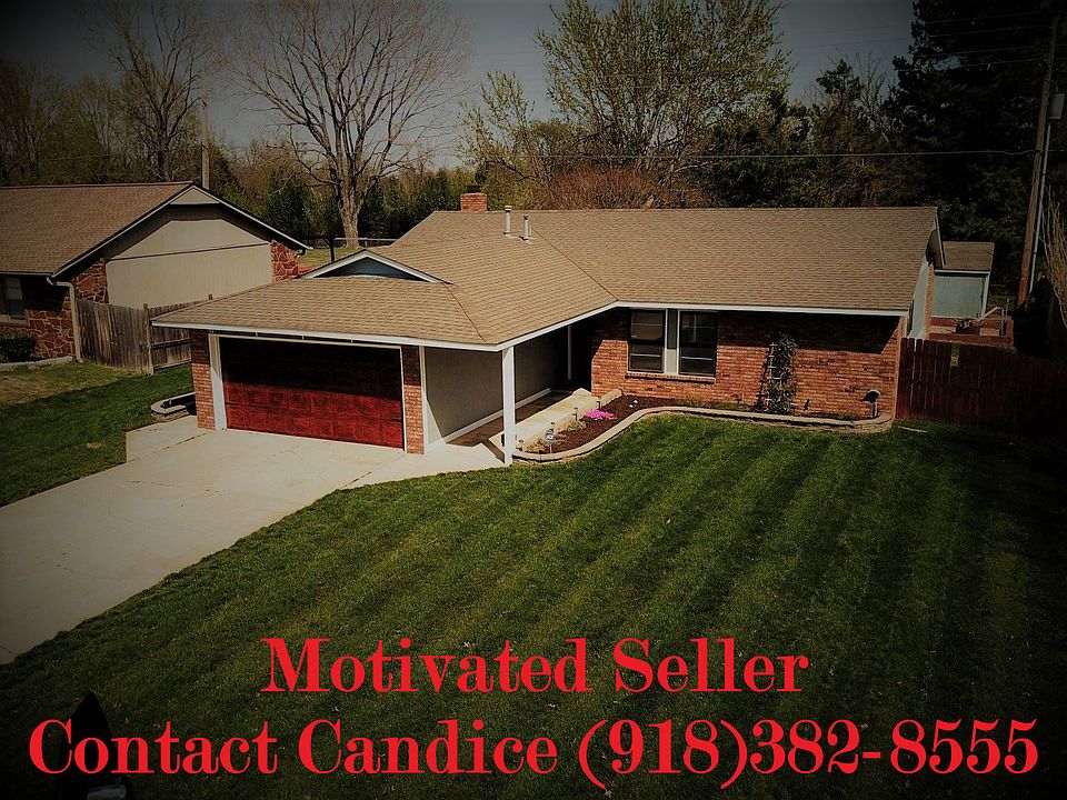 Beautiful newly renovated home. Tall Fescue Turf, 3 Zone Hunter Irrigation System, New Gutters and Downs, Interior and Exterior paint less than 1 year, 50 Gal. Gas water heater 2 years old, Covered stained back patio, storage building, All Ceilings scraped and Re-Textured, Custom epoxy counter tops, All Stainless Appliances, Gas Range 1 year old, Dishwasher 1 Year old, Refridgerator-Range-Dish Washer Included In Sale. Gas Fire Place, Brand new carpet in bedrooms/closets, Laminate flooring Hallway-entry and living. Stone look tile in Kitchen-Dining and Laundry Room. One of the nicest houses in the neighborhood inside and out. FOR SALE BY OWNER, showing by appt. only. Contact Candice @ (918)382-8555