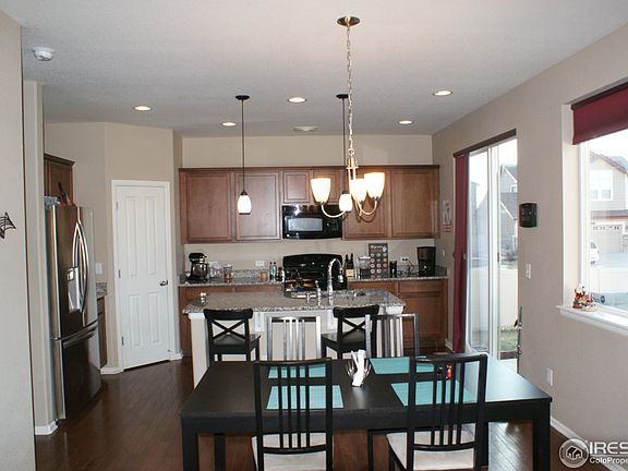 4 bedroom, 2 story home with 2 car garage on southeast facing corner lot. Kitchen features eating area, pantry, granite counters, gas stove and island. Convenient upstairs laundry room. Loft area at top of the stairs. Master has TQ bath with shower, double sinks, granite counter & walk in closet. Gas fireplace in living room, central AC, full unfinished basement. Fenced yard with sprinkler system and deck. Nice small town living with central access to Denver, Boulder, Loveland, Longmont & DIA