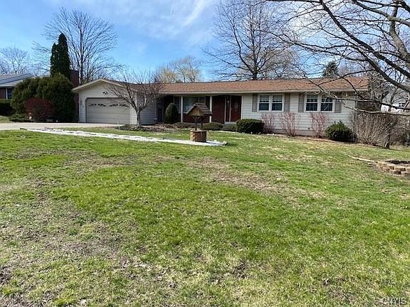 Welcome to this impeccable Ranch, located in the heart of Sherwood Farms. 3 bedrooms, 3 full bathrooms, LR, DR with beautiful windows that allow for natural light. Hardwoods throughout. Large kitchen with island too. An additional 1,360 sf downstairs. Large open staircase that leads to finished lower level featuring sliding glass doors that lead outside to patio and large park-like fully fenced yard. Also includes LR, family room, additional bedroom, full bathroom, sauna, craft room, large cedar walk-in closet, laundry room with 2 large windows and tankless hot water heater (which allows for immediate hot water) and tons of storage. So many other features (see attached list). This single story living in West Genesee School District is move-in ready.
