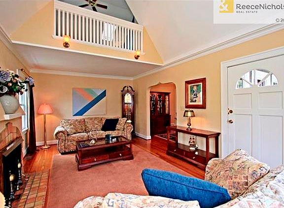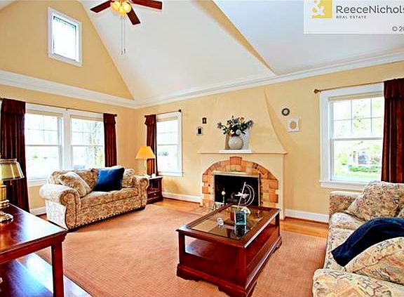 ATTRACTIVE 1 1/2 STORY WITH BRICK COURTYARD ENTRY. Corner lot. Walk into vaulted living room, & into windowed dining room w/hardwoods. Leaded glass windows. Open kitchen w/island. Two bedrooms on first floor w/full bath. Upstairs to lovely master with gorgeous view to the east. A lovely deck just off bedroom to enjoy it. Beautiful bath. A loft sitting room & an office cove. More closets tucked in. Garage w/added vaulted storage. And a bricked second parking space. Replaced windows. In excellent condition.