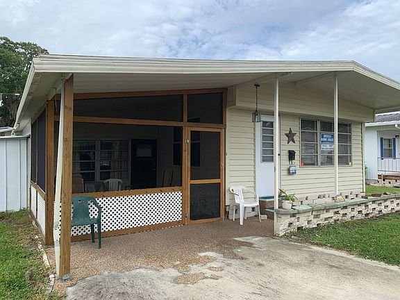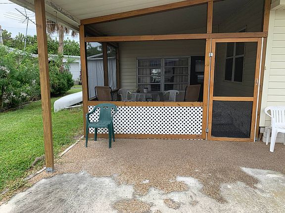 This is a mobile home in a 55+ community on a rented/leased lot. This 2BR/1BA mobile home is great for seasonal or year round living! It is in a great location with access to the Manatee River. There is a front set 12 x 12 screened lanai for watching the world go by. There is laminate, vinyl and linoleum flooring. There are mini blinds and numerous updates. There is a 12 x 18 addition that can be used as the second bedroom or craft room. The addition has washer/dryer hookups. There is a washer included in the sale. The galley kitchen has an eat in area and is adjacent to the living area. There is a foyer in the front that could be used as a dining area. The main bedroom has laminate floors and two closets. The bathroom has a single sink vanity and walk in shower. There is parking in front of the home for 1 car and in the rear for an additional car. .There is a shed for extra storage. Walk to the Manatee River to enjoy nature and relax. The lot rent is $395 and includes water, sewer, trash, lawn, Manatee River access. Highway Shores is convenient to I-75, Ellenton Outlet Shopping, dining and the Gulf beaches.