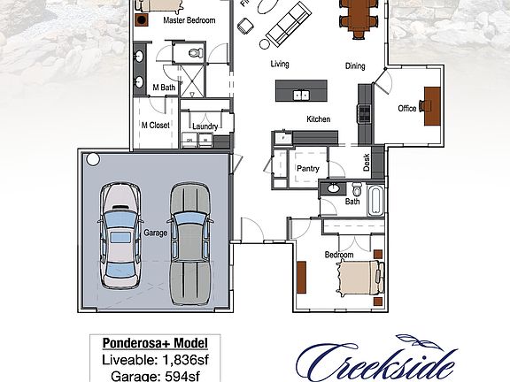 This Ponderosa Plus (2Br, 2BA and den) includes numerous custom features such as metal roof, granite countertop, fireplace, a two car garage with 6ft extra width, paver driveway, air conditioning, heating and much more. Our homes are fully featured with high quality finishes at the base price.