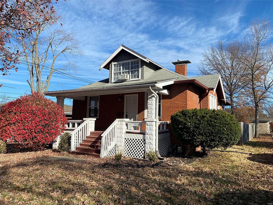 Full brick bungalow on quiet street! 3 bedroom, 1 bath, with unfinished basement. Walk on up to the beautiful covered front porch. Enter the spacious living room and you will immediately notice the wood flooring. Living room flows into the eat-in kitchen, showcasing nice cabinetry, newer countertop and sink, dishwasher, garbage disposal, walk-in pantry and back door to the back covered porch area. Front bedroom has choice of 2 entries – glassed-pained French Doors, or normal bedroom door. Back bedroom has a built-in bench seat, and an additional rear door to the backyard. The carpeted 3rd bedroom fills the spacious upper level. Home includes newer vinyl windows throughout! Big fenced backyard includes a large shed. Appliances included are Refrigerator, Stove, Washer and Dryer. Must see! Buyer to verify all measurements before making offer!