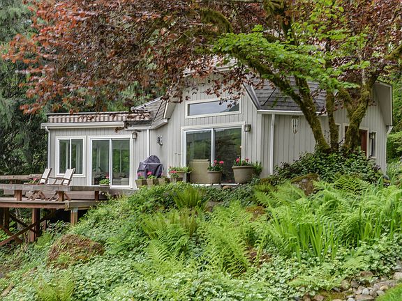 Aeordynamic Geodesic Dome Design originated by Buckminster Fuller. Absolutely stunning river and mountain views. 2007 total remodel with Shibumi custom cabinets, stainless steel appliances and granite counters. This home has 1429 Sq. Ft., 2 Bedrooms and 1.5 bathrooms. Plentiful windows to watch the change of the seasons. Automatic awnings can be opened with remote control. Covered carport attached to house, Timbertech tiered decking to view the amazing waterfall. Acre plus of manicured yard with Japanese stone lanterns and other Asian art pieces. Heated 20'x22' workshop with built in work benches. This is an incredible one of a kind property. Peaceful, private, and a view that will leave you speechless. Financing will be a challenge, owner carry or portfolio lender with 30% down are possibilities.