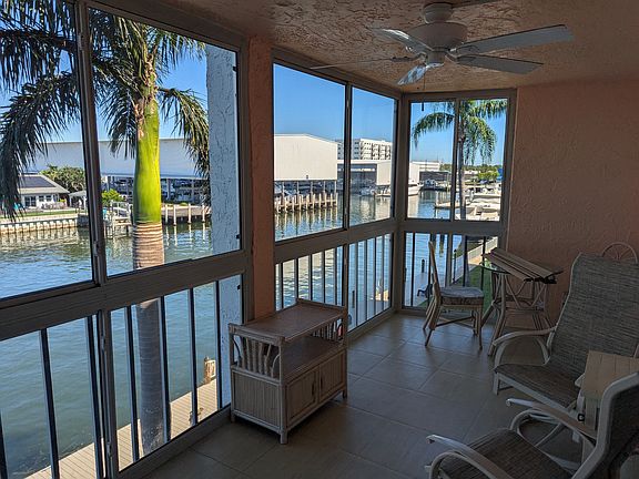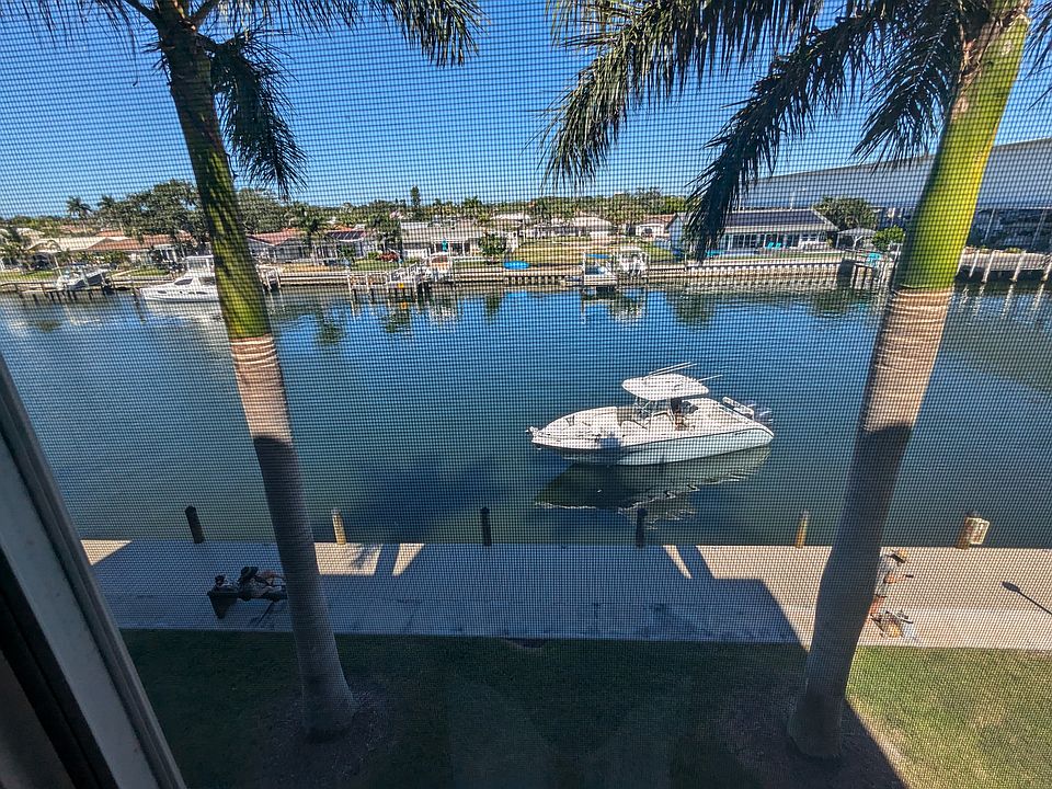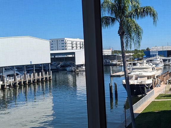 View to die for, on busy canal leading to large marina, watch boats going by all day. Great location, 5 minutes to the St. Pete Beach, 5 minutes to downtown St. Pete. Third floor condo with elevator, no flood worries. Property has dock so you can tie up your boat, pick up family. Grocery store across the street, tiki bar crawling distance. Reserved parking. Community has clubhouse and pool.