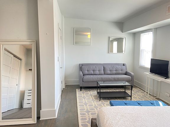 Huge Primary Bedroom with Ensuite Bath and Private Living Area in All-Female Petworth House Former Reuters journalist has a fully-furnished massive primary bedroom with ensuite bath and a private living area available for $1,245 a month plus utilities in her clean and quiet Petworth row house that is shared by mature-minded college-educated female housemates. You would be one of 4 professional young women sharing the 4 bedroom 2.5 bath main portion of the house. Landlord lives in the separate finished basement with its own entrance. Room 4 (identified in the floor plan attached) has a private sitting area with a full sized 3-seater couch, coffee table, and Roku TV, plus full sized bed, huge closet, dresser, desk, chair, and two area rugs. All linens, towels, pillows, blankets, coat hangers, etc, are provided, much like an Airbnb. The house has elegantly furnished common areas and a fully equipped kitchen, free washer/dryer, powerful internet and a sunny front porch for the exclusive use of tenants. The house is less than a mile from the Green subway line at Georgia Avenue and 1 block to express and local busses on Georgia Ave. Easy free street parking. Walk to Safeway, CVS, Yes! Organic Market, and fun Petworth eateries on Georgia Ave, Upsher St, 14th St and Kennedy St. Previous housemates and the landlord wanted to maintain the home as a quiet refuge after a busy workday, so please follow house rules such no overnight guests, limit day guests to the weekends, no parties/drugs/smoking. Sorry, no pets. Check out the 3D 360 degree interactive virtual tour included here. If this is the vibe you're looking for, please message the owner, Mana, with a little something about yourself and to schedule a video call. Thanks! Seeking 1 year lease or longer with working professionals. Mature minded grad students welcome to reach out. No smoking/vaping/drugs/parties/overnight guests please.