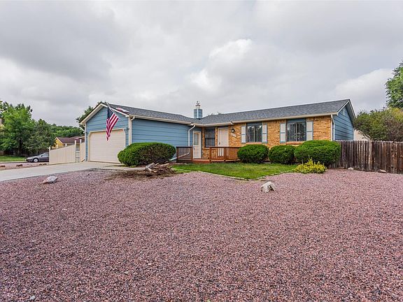 This charming Ranch home sits on a large 1/4 acre corner lot with beautiful mountain views* Located nearby is a large family park with playgrounds and basketball courts, schools, a wildflower park, shopping, and military bases* As you step inside, you will be greeted with an open floor plan with the Living Room, Dining Room, and Kitchen open making this a great area for entertaining* The Dining Room has a walk-out to the Backyard* The galley Kitchen has stainless steel appliances and a window above the sink* The Master Bedroom has an adjoining full Bath with hallway access* Also, on the main level are 2 additional Bedrooms* In the basement is a spacious Family Room with a cozy wood burning stove for the chilly Colorado winters* There is also a 3/4 Bath and 2 additional Bedrooms in the basement* In the backyard is a large patio area with built-in seating area and mature trees*