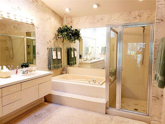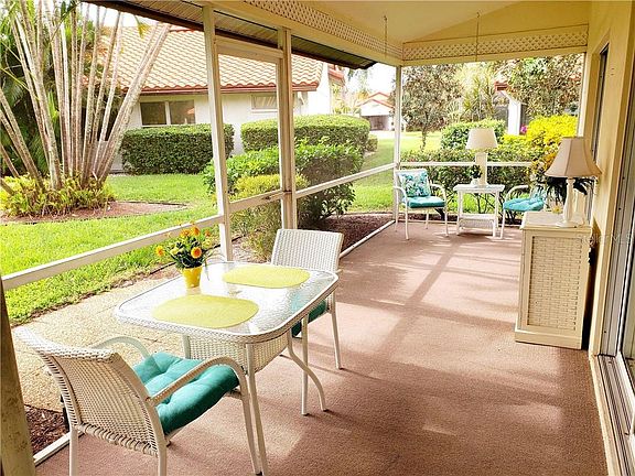 Awesome Turnkey Home to move right into with Room to Roam! Nice and Bright open floor plan in a Wonderful Active Golf Community, though you don't need to be a Golfer to have fun! Set up your Volleyball Net on this Large Lot and invite the Neighbors over! Enjoy this Split Ranch with spacious Living Room open to the Dining Area. The Kitchen is open as well, with counter seating, to enjoy Company while you cook! Speaking of cooking...the Sellers didn't know what color appliances that you wanted so they are offering a $2,500 credit for you to choose! Have your herbs right at hand in the window box, along with all cooking and serving accessories. Enjoy the open Living Room with high Vaulted Ceilings that overlooks the Lanai, Kitchen, and Dinette. The Master Bedroom has Vaulted Ceilings, Slider to the Lanai, and a spacious En-Suite Bathroom with Dual Sinks, Garden Tub, separate Shower Stall, Large Walk-In Closet, a Water Closet, and a Skylight to brighten your day! Your Guests can enjoy the other side of the home with a second Bedroom and Bathroom, along with a conveniently located Laundry Room. Invite the Family over and relax on the extended Lanai overlooking green space! The spacious garage (20.6x19) has an area for a nice Workbench, with Cabinets, to do crafts or make repairs. The Sprinklers are on a timer; and there a replaced Hurricane Garage Door. The beautiful Tile Roof was replaced in 2011, so you are all set with that! Peridia has so much to offer! Enjoy the Tiki Bar and specials, the Lounge/Restaurant, Member-only Events, newly renovated Pickleball/Tennis Courts, Member-only golf prices and Holiday Tournaments, Swimming and Floor Aerobics, Bocce, Bowling, Men/Woman Golf Leagues, Member-only Dinner Dances and gatherings, many different Card groups, etc! Peridia is one of the lowest priced Golf Communities around with all of the Activities that it offers! There is an RV area for parking with maximum spaces at a modest cost. Plan on spending $450/ year to reach your Food & Beverage minimum, along with a one-time Capital Contribution of $1,331. Don't miss out on this very well-maintained home! The Sellers are truly going to miss it!