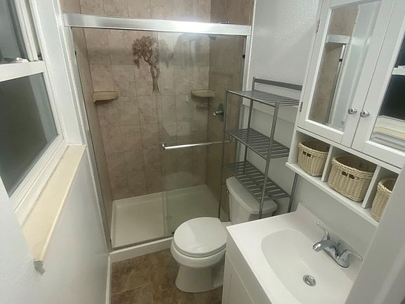 This room has an attached 3/4 bathroom. It is located on the top floor in the northwest corner. It is carpeted with a ceiling fan. New vanity and tile on floor in bathroom. Large window overlooking backyard. The house in located on a corner lot on a spacious 12000 foot lot. The common areas include the kitchen, dining room, and living room on the main level. It also as a laundry room on the main level on the far east side that has 2 washers and 2 dryers set up in there. Large glass slider in the dining room opens to a concrete patio in the back yard. Month to month lease term. No smoking, No pets.