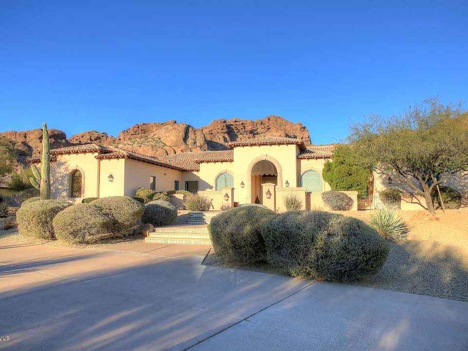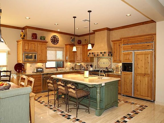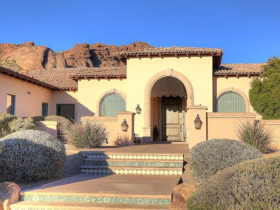 See the magic as you walk through the front door. Extraordinary construction, design, finishes and spectacular Camelback Mountain views define this amazing Montecito Homes Tuscany Villa in the much sought-after Arcadia area! Newly built in 2000, this 5643sf integra-block construction on 1.3 acres on Camelback's south slope. The center of the home is a dream gourmet kitchen/breakfast nook with custom knotty alder cabinets, granite and travertine counters and top-of-the-line stainless steel Dacor professional six-burner gas range, dual convection ovens, warming tray and Sub Zero fridge. The kitchen opens to a fabulous family room w/fireplace, open bar, sink, fridge and walk-in 752-bottle wine cellar which has Halogen Track lighting and dedicated A/C.