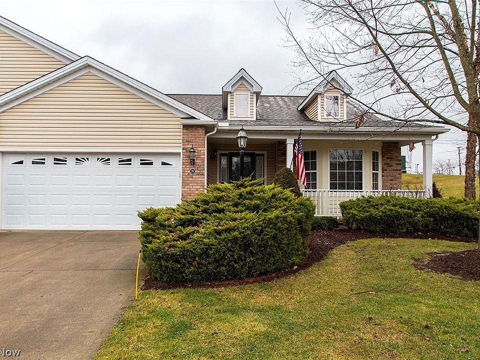 Ranch, cluster home located in the heart of Medina with inviting front porch. Enter into the eat-in kitchen with plenty of cabinet space, pantry and wonderful bay window for a light filled breakfast area. The open great room/dining room is perfect for large gatherings. Enjoy the sun room surrounded by windows with access to private deck. Conveniently located 1st floor laundry, guest bedroom and hall bath. Spacious owner's suite with vaulted ceiling, walk-in closet, attached bath has walk-in shower, double sinks with lots of counter/storage space. The full basement is perfect for all your storage needs. Upgrades include roof with front gutter guard (2022), furnace and A/C (2017), washer/dryer (2014), kitchen appliances (2015), hot water tank (2016), deck painted (2022). Located on a cul-de-sac in Glenshire Hollows with easy access to Rt. 18, 71, and Medina square. Enjoy the carefree lifestyle of a cluster home, with a low maintenance fee, for lawn care and snow removal. Availa