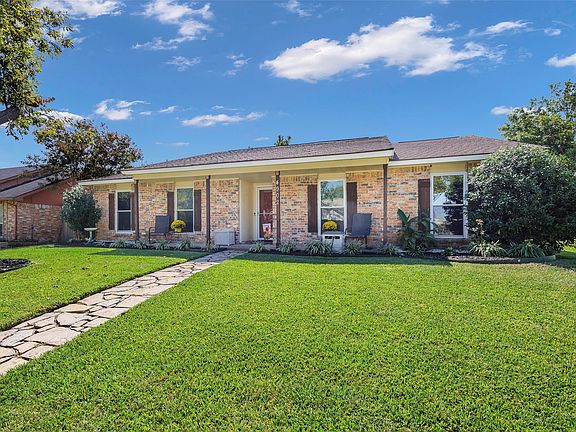 This updated home in Lakeview Village offers 3 bedrooms, 2 baths, a large den with fireplace, formal dining, living room and an open versatile floorplan. Designer colors and modern lighting throughout. Kitchen with granite counters, stainless steel appliances, breakfast bar, double stainless sink, built in microwave, plenty of cabinets and storage and convenient butlers pantry. Large front porch allows for seating. Generous sized den has wood burning fireplace and French doors leading out to 16' x 9' covered patio. Backyard with shade tree and wooden fence with steel posts. Front yard with hearty St. Augustine grass. The current owners are using the formal living and dining combo as a 4th bedroom. Home is meticulously maintained and ready for new owner. Close to Lake Ray Hubbard and convenient to Interstate 30 shopping and restaurants.
