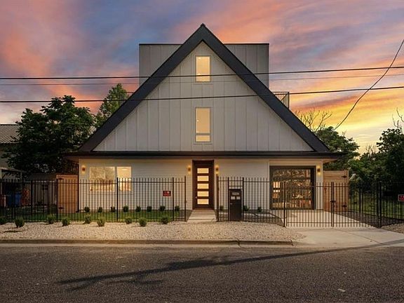 Single Family house in East MLK, luxurious and private! New construction with an open floor plan that welcomes you with luxurious tile flooring and a stunning kitchen with matching black stainless steel appliances including a refrigerator and built in wine fridge. Gourmet gas range has 6 burners and includes a pot filler built above it. Custom black and white cabinetry complete the kitchen with accents of gold hardware, plumbing and lighting fixtures. Second floor includes 2 bedrooms each with their own en suite, full bathrooms including the primary suite and the luxurious primary bathroom with a walk in marble shower with built in jets and soaking tub, dual vanities, and spacious walk in closet. Third floor bedroom also includes an ensuite full bathroom and features a landing with a full wet bar, beverage fridge and access to a 3rd floor wrap around deck. The garage is also conditioned space and could easily double as a temperature controlled work out room or flex space. The property is private and completely fenced in with a cedar fence around the sides and back and a front, steel fence with both a pedestrian gate and automatic solar powered driveway gates. Other upgrades include a black metal roof, full security system with cameras, built in speakers, steel/glass garage door with epoxy floors and tankless water heater. Location can't be beat with easy access to Hwy 183 and just a 10 minute drive to Downtown and ABIA and just 15 minutes to the Domain. Walk to both Givens District Park or Springdale neighborhood park and easily bike to Springdale General and all of East Austin's amenities and restaurants.