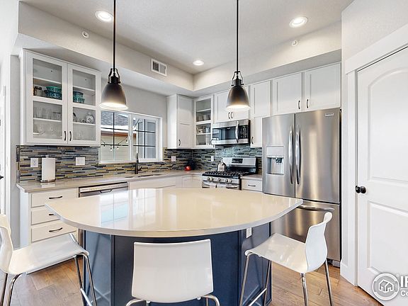 This contemporary townhome is situated in the highly desirable Morningside Village of South East Fort Collins and offers three attractive bedrooms and 2.5 bathrooms. This end unit on a peaceful street boasts an excellent location directly next to the community pool. Within just a few minutes, you'll find yourself near Zach Elementary and outstanding schools, as well as restaurants, coffee shops, parks, dog parks, and much more. Commuting is made easy with convenient access to I-25. Upon entering, you'll be greeted by a spacious living room featuring a fireplace and an inviting living room. The engineered hardwood flooring seamlessly extends into the well-designed kitchen. You can choose to dine at the generous Quartz Island or the modern breakfast nook. The kitchen is equipped with stainless steel appliances. Additionally, there is a study on the main floor. The interior is embellished with exquisite finishes, creating an elegant ambiance. Furthermore, you can enjoy the luxury of private outdoor living space and a detached 2-car garage.