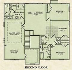 The Hunter plan offers 4 bedrooms, 2and1/2 bathrooms, with a total of 2833 sq.ft. The second floor Master Suite includes Sitting room and Walk-in Closet. There is also a Second floor Media/Game Room, along with the other bedrooms. Downstairs you will find a separate living room and dining room, family room, and kitchen with breakfast area. Choose from Rear Deck or Patio.