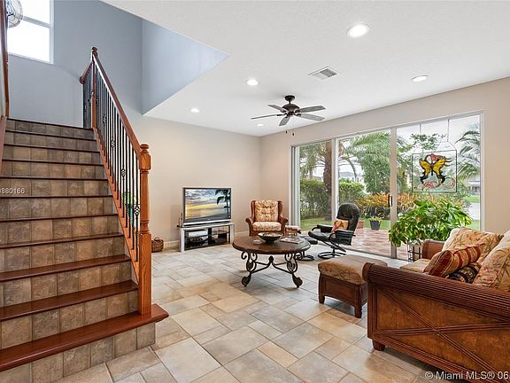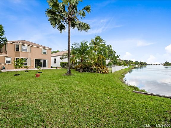 Lake view, oversize corner lot in Capri at Riviera Isles. This home features tile on the first floor in gray hues laid in a Versailles pattern, freshly painted interior in light gray, large open kitchen with island & window box seating in the breakfast area. Large family room with sliding glass doors to the patio to enjoy the serene lake view. The large backyard has several fruit trees and has room for a pool. Accordion hurricane shutters on all windows. Wood flooring on the stairs and second floor where all 4 bedrooms are located. Take advantage of all the amenities offered by Riviera Isles, 24 hr guard gate, clubhouse, exercise room, tennis courts, basketball & pool. The surrounding area has everything you need, convenient to major highways, dining, shopping, schools & hospitals.