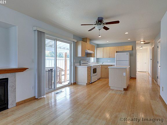 End unit on a cul-de-sac!Come enjoy one level living at it finest.Light & bright open floor plan.Gas fireplace,ceiling fans.Bamboo flooring throughout.Dining area w/slider to covered patio.Kitchen boasts a large island with all appliances included.Master bedroom suite.Laundry area with washer/dryer.Oversized fenced yard.One car attached garage.Central AC.Just minutes to public transportation,coffee,Mcmenamins,Safeway,cafes & services.Perfect for first time buyer or investor.No HOAs!