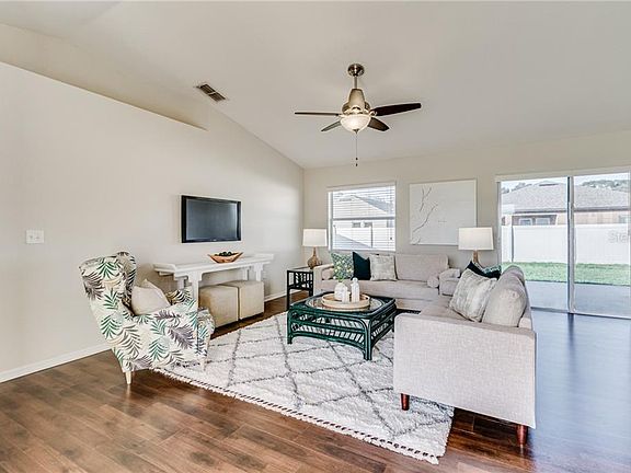 Welcome Home to this fantastic location in St. James Crossing! The double entrance doors invite you into the spacious open concept living area. The home features new laminate flooring throughout, new hot water heater, and new stove. The master suite offers a spacious walk-in closet as well as a four piece en suite. The split bedroom designs offers the privacy you desire and the spacious back yard is perfect for grilling and enjoying this great Florida weather. The kitchen offers both a breakfast bar, a breakfast nook, and pantry. The laundry room is conveniently located off the kitchen and has plenty of space for storage.