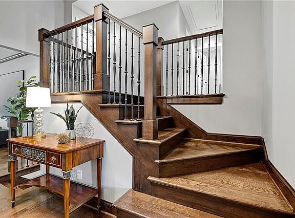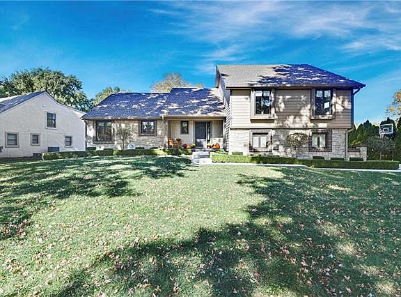 Welcome Home! This wonderful professionally remodeled home in sought after Leawood Country Manor is ready to move right in! With all of today's updates, this home has charm with all of the modern touches! Walk in and you will find a spacious entryway with a stunning overhead light fixture! Gorgeous solid hardwood floors throughout the whole house...Large family room with high ceilings and see through fireplace is open to a cozy reading/office area complete with wet bar and windows galore! You will love entertaining in the open concept dining room with dazzling light fixture! Unbelievable light filled kitchen includes custom cabinetry with soft closed doors, stainless steel appliances, quartz countertops and eat in area. Leading you to the upper level living area is the custom iron staircase open to the front hall and great room. The spacious bedrooms have ample closets and stylish window coverings. All full bathrooms have tiled heated flooring...The Primary suite has a darling fireplace, ceiling fan and a spa like bathroom complete with granite countertops, tiled flooring, walk in closet and double vanity. Lower level has top of the line carpeting with bar/wine fridge. 4th bedroom with egress window compliments this stunning addition. Large lower level bath includes tiled flooring and walk in shower. Storage area and unreal garage both have epoxy flooring that is sure to make any buyer happy! Surround sound on main level, primary bedroom and outside. See supplements for the extensive list of updates. This house is like a brand new home without having to build! Great location-close to schools, shopping and entertainment! Don't miss out on this fabulous home! All room sizes and taxes are approximate. Buyers agent to verify!