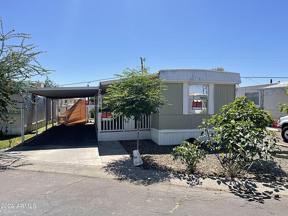 This Glendale, AZ mobile home offers a fantastic opportunity, two bedrooms, one and half baths, wash room, kitchen and living area. Very cozy place. This is a 55+ community. This property comes with all appliances included, refrigerator, washer, dryer. It also boasts two mini-splits AC units in addition to the central HVAC unit, so you can beat the heat this summer.