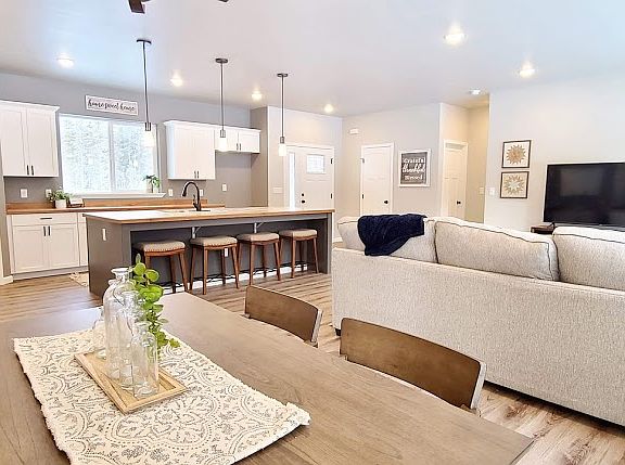 This captivating 4 bedroom 2.5 bath home is nestled on a 1 acre corner lot with an oversized 3 car heated garage. The grand master suite includes a large walk-in closet, his and her vanities and a walk-in tiled shower. 9' ceilings throughout with oversized windows and a large 9' kitchen island. It is placed on a southern exposure lot taking advantage of the Alaskan sunshine. The large covered patio with a gas stub is truly a griller's dream.