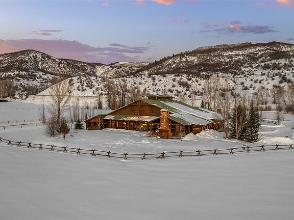 Just 11 miles north of downtown Steamboat Springs, the 35-acre Flying J Ranch boasts amazing views, lush meadows of irrigated hay and 3 channels of the famed Elk River offering some of the finest fishing in NW Colorado. The property was completely transformed into a 5bd/9bth luxury residence. The main wing, built in 2019, incorporates rich Western heritage with modern sensibilities resulting in a luxury gathering place for three generations of family and guests. The great room is anchored by stunning rock fireplace and opens to the chef’s kitchen boasting 3 work islands, granite counters, top-quality appliances, and walk-in pantry. The views to the west from the great room, the extensive covered deck with wood-burning fireplace and the screened porch offer soothing places to enjoy the spectacular sunsets. Beyond the great room lies a western saloon incorporating reclaimed materials which exude rustic elegance, great for entertaining. A built-in grill and smoker link the outdoor spaces allowing guests and family to join the action or sit back and let the evening roll on. A hall off the kitchen leads to a media room and to an elegant primary suite with a deep soaking tub, walk-in closet and yoga room. The upper level, created for kids or guests, offers an 8-bed bunk room with living space, 2 customized baths and a second media room. The guest wing of the home is a 3bd/3bth, space offering privacy with its own den with fireplace and covered porch. A heated 4+ car garage links the home to a plentiful storage area and workshop. Connected is an art studio with bath, loft and murphy beds for overflow guests. The land boasts a park-like setting attracting local game and the river is home to a healthy population of Rainbows and Browns, making for a great fishing experience. A glamping tent on top of a framed deck offers a summer and fall camping experience near the river. Meadows irrigated with senior water rights produce rich hay and acreage for cattle/horse pasturing.
