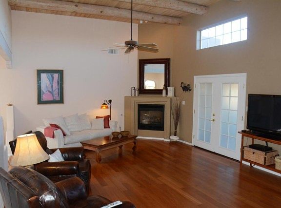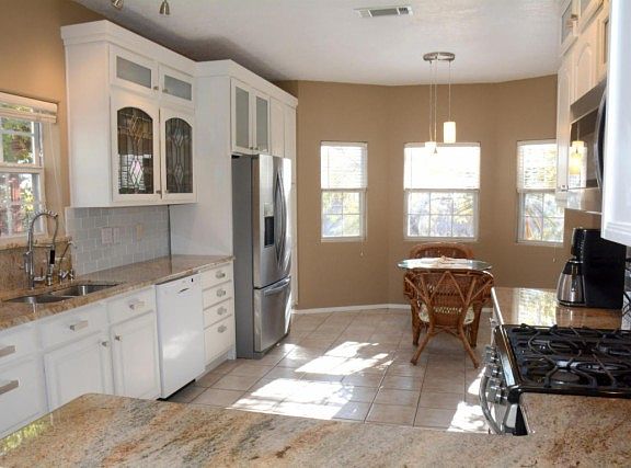 Enjoy spectacular mountain views with open-space walking trails from the sun room of your new home! Your custom home in the prestigious Corrales Heights neighborhood of Rio Rancho has it all. Your updated kitchen is large enough for more than one chef at a time and the adjacent nook is perfect for a casual meal. Cherry wood floors, soaring vega- beamed ceilings, and the corner fireplace make the great room the perfect space for entertaining guests or relaxing by the fire. Your spacious master suite offers privacy and access to the sun room. Two large bedrooms are perfect for family and guests or for use as a home office. Workshop space is no problem in the generously appointed three car garage. Come visit today and begin to imagine your life in this charming, inviting home!
